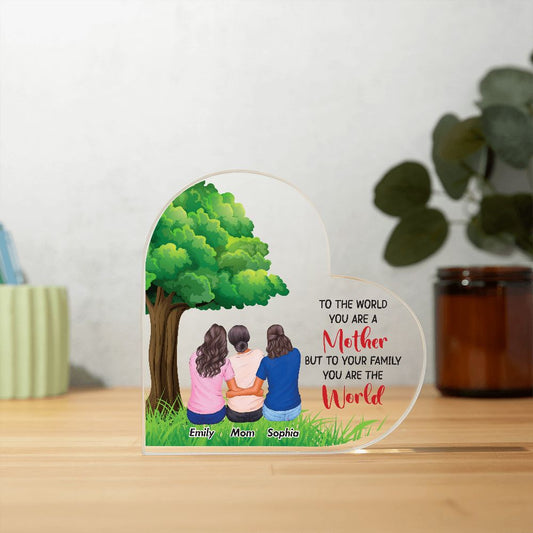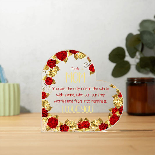 Mom Whole World Gold Red Roses Heart Acrylic Plaque