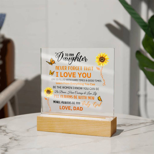 DAUGHTER DAD NEVER FORGET SUNFLOWERS ACRYLIC SQUARE PLAQUE