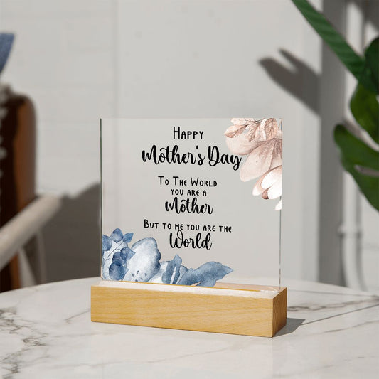 Mother's Day You Are The World Blue Blush Square Acrylic Plaque