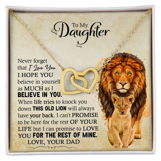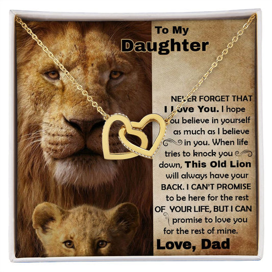 Daughter Dad Old Lion Promise Interlocking Hearts Necklace