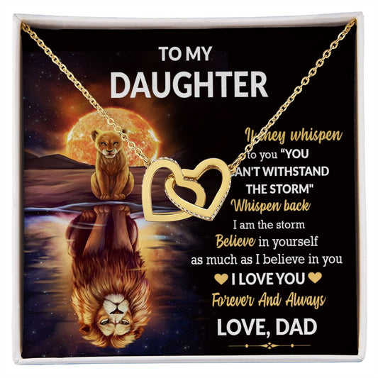 Daughter Lion Storm Whisper Interlocking Hearts Necklace
