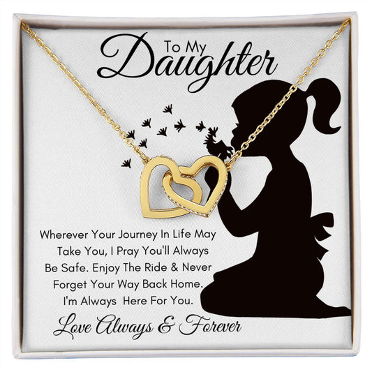 Daughter Old Lion Back Interlocking Hearts Necklace