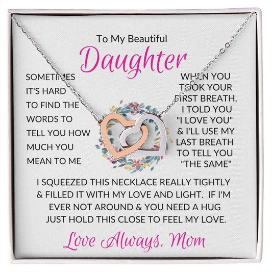 Beautiful Daughter Mom Pink / Interlocking Hearts Necklace