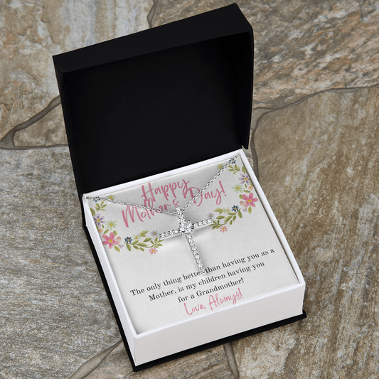 Happy Mother's Day Grandmother / CZ Cross Necklace