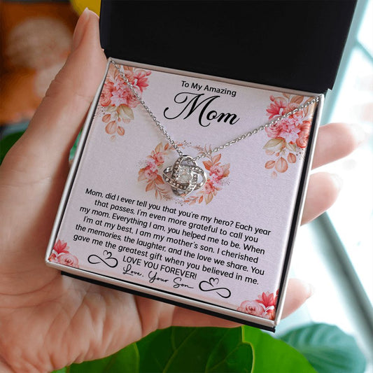 Mom Son My Hero Love Knot Necklace