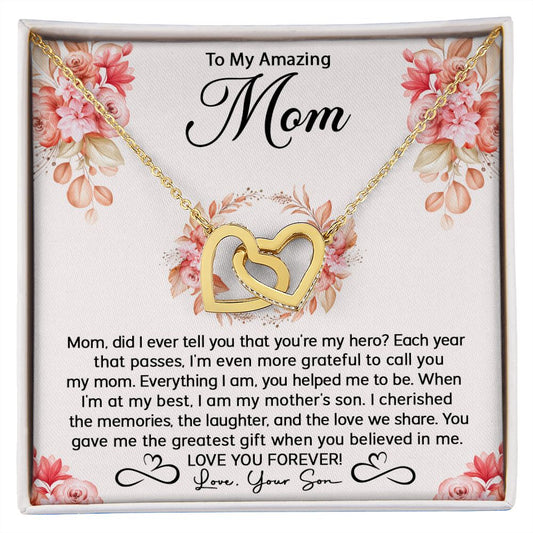 Mom Son My Hero Interlocking Hearts Necklace