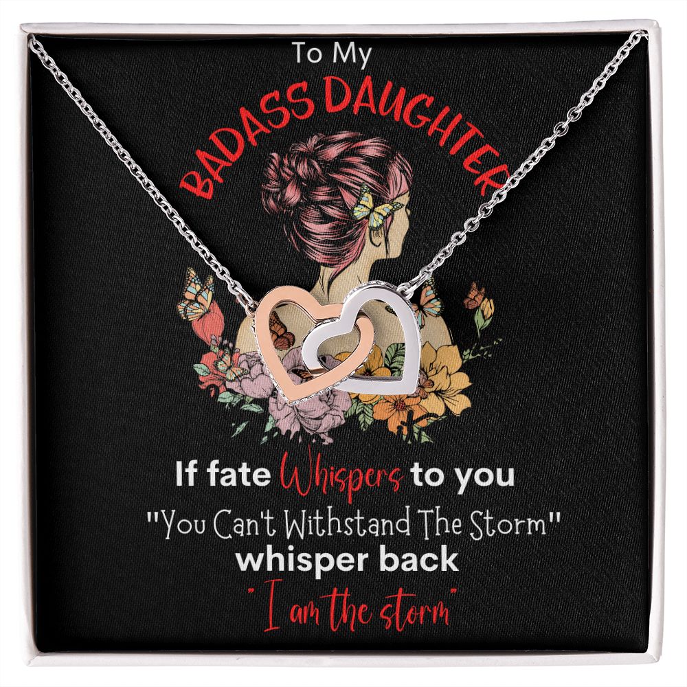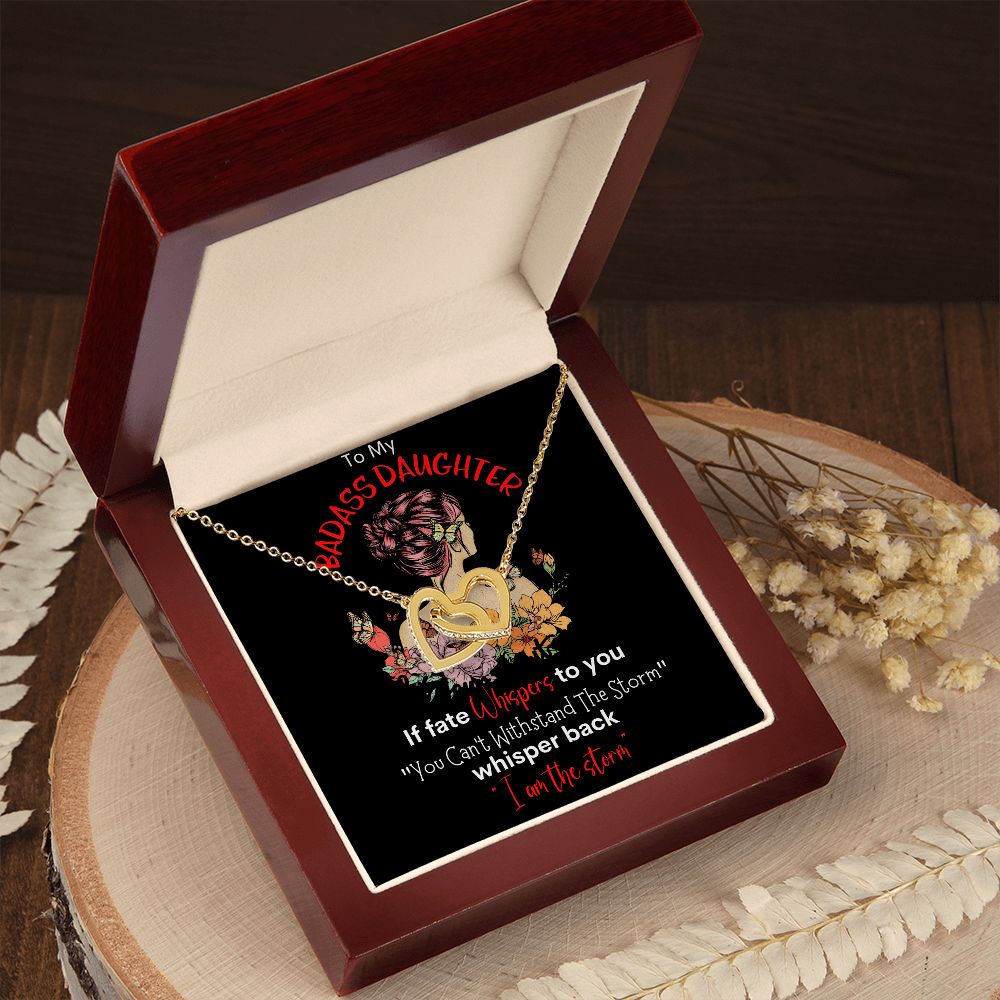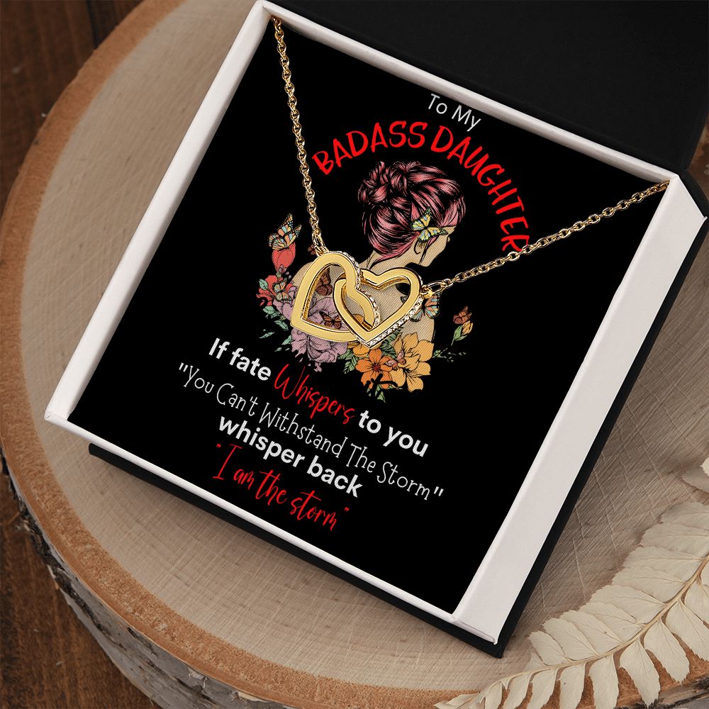 Badass Daughter Interlocking Hearts Necklace Blk