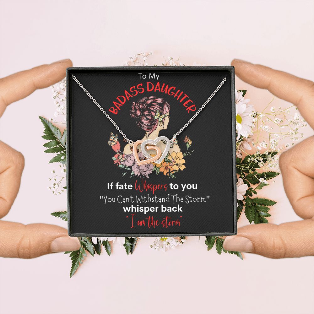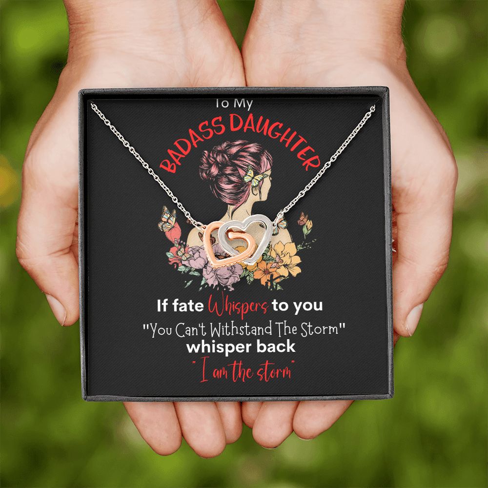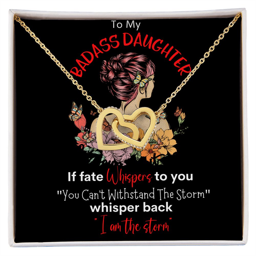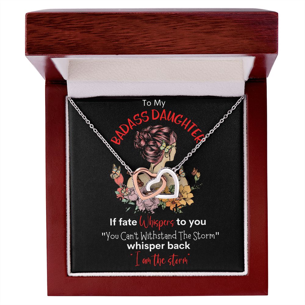 Badass Daughter Interlocking Hearts Necklace Blk